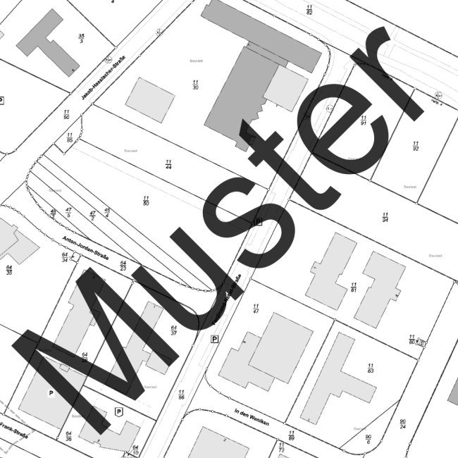 Auszug aus der Liegenschaftskarte Rheinland-Pfalz für Auskünfte und Planungen rund um Grund und Boden, als amtliche Ausgabe, sowie in verschiedenen Formaten und Kombinationen